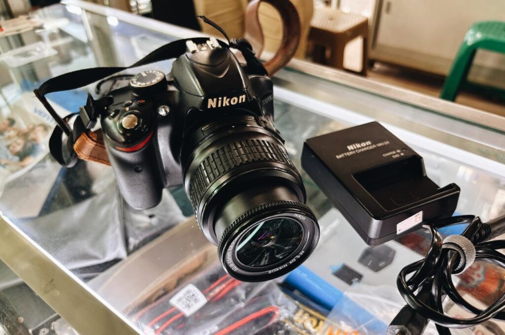 It’s an old Nikon. Its condition isn’t great anymore. The viewfinder is broken. The lens has fungus. The battery door clip barely works. Autofocus comes and goes as it pleases.
